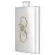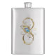 Oro, símbolo brillante de infinito, decorado con una pluma de pavo real de joyas con un fondo turquesa en negro.