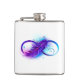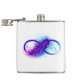 Símbolo infinito con una hermosa pluma pintada de color violeta y azul brillante sobre fondo blanco.