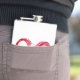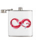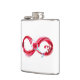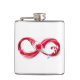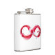 Símbolo infinito de flujo continuo de vino tinto vertiendo en vidrio de vidrio sobre fondo blanco.