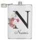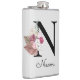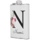 Petaca Inicial floral boho rosa monogramada N