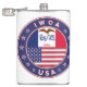 Insignia de Iowa con bandera de Iowa y bandera de los colores de Estados Unidos, forma redondeada. Emblema de Iowa. Sello de Iowa. Colección de Estados Unidos.