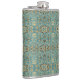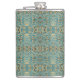 Esta foto digitalizada de flores, dorado dorado, negro y amarillo, con ramas y tallos se muestra contra fondo verde azulada azul.
