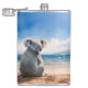 Koala sentada en una playa de arena mirando al espectador. Este molesto koala es un nativo de Australia, son fácilmente reconocibles por su cuerpo inoxidable y sin sastre y su gran cabeza con orejas redondas, onduladas y una nariz grande en forma de cuchara.