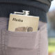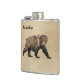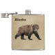 Presenta una pintura digital de un oso Kodiak en un pergamino neutro, o papel antiguo, fondo. También aparece el texto "Alaska". El oso Kodiak (Ursus arctos middendorffi), una subespecie del oso marrón, o pardo, son los osos más grandes del mundo. Un macho adulto puede tener más de 10 pies de altura cuando está erguido sobre sus patas traseras y pesa más de 1500 libras -verdaderamente un espectáculo para contemplar. Se estima que un oso en el zoológico de Bismarck del Norte pesó hasta 2400 libras. Los osos viven en las islas del archipiélago Kodiak de Alaska. Hoy en día hay aproximadamente 3500 osos de Kodiak y su número está aumentando debido a las excelentes condiciones de su hábitat, incluido el puño suficiente para comer. Se les llama "takuka-aq" en Alutiq, la lengua de la gente nativa de esa zona. Se cree que los osos han estado aislados allí desde finales de la última Edad de Hielo hace más de 12,000 años. Aunque son el carnívoro terrestre más grande, su dieta incluye grandes cantidades de hierba, otras plantas y bayas. Hoy en día hay aproximadamente 3500 osos de Kodiak y su número está aumentando debido a las excelentes condiciones de su hábitat, incluyendo peces suficientes para comer. Debido a la abundancia de recursos alimenticios, los osos de Kodiak tienen rangos domésticos más pequeños que cualquier otro oso pardo y no tienen necesidad de defender territorios. El pueblo de Alutiq cazaba osos por comida, ropa y herramientas. Las flechas, las lanzas y una gran cantidad de coraje eran necesarios para el equipo de caza. Por lo general, las cabezas de oso se dejaban en el campo como señal de respeto al espíritu de los osos.