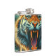 Una imagen cautivadora de un tigre enardecido en el fondo de una jungla iluminada por la luna. Los ojos del tigre brillan con una intensidad inquietante, mientras que la luz de la luna arroja sombras dramáticas sobre su piel.