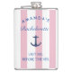 "¡Brindar a la futura vela final de la novia antes del velo con esta moda y divertido "¡Última vela antes del velo!", frasco de soltero! Diseñado con un toque náutico, el matraz presenta un texto en negrita con un toque de color rosa y blanco lúdico, lo que lo convierte en un accesorio elegante y práctico para la novia y su equipo. Ya sea que esté celebrando en la playa, en un barco o en una fiesta previa a la boda, este elegante matraz garantiza que su bebida favorita se quede con usted con estilo. Un gran aguijón y el inicio de la conversación, ¡es el regalo perfecto para la futura novia y su equipo mientras navegan en el siguiente capítulo!"