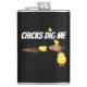 Juego de palabras con el dicho "Las chicas me quieren", significando un hombre que se cree irresistible para las mujeres, pero burlándose del dicho con el uso inocente y literal de pollitas escarbando