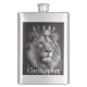 Enorme matraz personalizado con el ilustracion de un hermoso león blanco y negro con una corona real plateada, ambientado en un fondo negro. Personalizar con tu propio nombre, Iniciales o texto. El estilo de letra, el color y el tamaño pueden cambiarse.