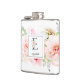 Elegante acuarela color rosa, flores borgoñas y blancas y delicada vegetación del jardín con la letra "E" adornada con un matraz gris pizarra, mongograma. Flask incluye una única línea de texto de plantilla para personalizar con el nombre.