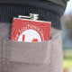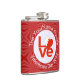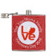 La BANDERA Bahreiní LOVE se muestra aquí en un matraz de cadera. El diseño muestra la palabra AMOR en letras rojas dentro de un círculo blanco fractal de cuadrados chillones. El círculo se asienta sobre un fondo rojo, fractal, también de cuadrados chillones. Un regalo perfecto para tu hombre para el El día de San Valentín, pero puede ser personalizado para cualquier ocasión.