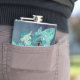Este matraz tiene una foto genial de un lagarto azul encima.