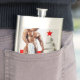 Navidades de SlipperyJoe comprando un árbol de espirales de papel blanco coronado por una vibrante estrella roja que golpea el tema de las vacaciones atrevida banda de escarlata corriendo horizontalmente sexy hombre muscular de pecho parcialmente vestido hoja de cama artística sin camisa regalo de tipo bolsos de compras estacionales regalos de orgullo gay alegrías LGBTQIA