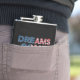 Un diseño vibrante e inspirador con la frase "Sueños se hacen realidad" en colores audaces y patrióticos de rojo, blanco y azul. El texto se representa en un tipo de letra dinámico y llamativo, lo que evoca un sentido de esperanza y posibilidad. La composición general es limpia e impactante, los espectadores motivadores creen en sus sueños y luchan por el éxito.