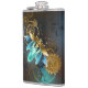 luciérnagas de vapor con alas transparentes azules y bombilla verde sobre fondo gastado, marrón y texturado. Estilo Steampunk.