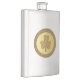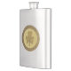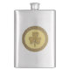 Este impresionante matraz presenta una imagen gráfica de una moneda de oro con dos tonos de oro. El círculo exterior tiene una textura áspera. Dentro del círculo interior de la moneda hay un shamrock dorado texturado compuesto por 3 hojas y un tallo.