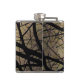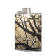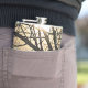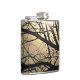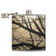 Este llamativo matraz de cadera presenta un místico cielo nocturno. El aire está impregnado de niebla. La luna llena que brilla a través de las ramas de los árboles ilumina las nubes brumosas en tonos dorados, naranjas amarillos, blancos y marrones y forma un interesante patrón abstracto.