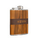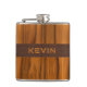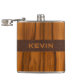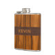 Madera de caoba y textura de cuero marrón con monograma personalizado.
