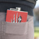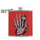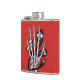El matraz de la mano del esqueleto presenta un ilustracion gráfico de una mano de un esqueleto con fantasmas espeluznantes negros con ojos brillantes girando alrededor de él sobre fondo rojo profundo del personalizable.