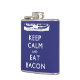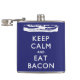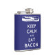 Mantén La Calma Y Come Bacon. Bacon te calmará, te amará y te mantendrá... ¡Bueno, tú! Devorad un delicioso tocino y autoractualización. Basado en el Poster de la Segunda Guerra Mundial, "MANTENGA CALMA Y SIGA". Texto blanco e imagen sobre un fondo azul marino (#000080 Color hexadecimal).