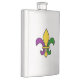 Diseño con un patrón impecable con fleur-de-lys (flores de lirio) en los colores de New Orleans Mardi Gras; diseño morado, dorado y verde sobre fondo blanco
