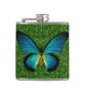 Petaca Mariposa Azul Sobre La Matraz Verde Purpurina