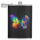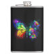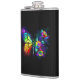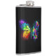 Arcoiris, mariposa monarca luminosa, pintada de forma artística con ramo de iridiscente, rosas brillantes y luminiscentes sobre fondo negro. Mariposa arcoiris.
