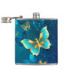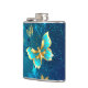 Oro volador, mariposa de joyas sobre fondo textural azul. Diseño con mariposas.