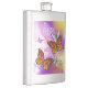 Naranja, mariposas monarcas detalladas sobre la luz, púrpura, pintoresco fondo pintado.