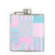 Un matraz de cadera de bonito, con un diseño mixto Faux Patchwork de Floral, Check Gingham, Polka Dots y patrones de rayas. Este patrón, que forma parte de la colección "Días de verano" de Posh & Painterly, se puede ajustar para que se ajuste a cualquier matraz.