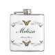 Mariposas de cola de cigalas amarillas y negras del Tigre oriental con torres florales negras Maid of Honor keepsake Flask. ¡Una mugre de honor gracias regalo! Simbólicamente la mariposa se asocia a menudo con el cambio, la transformación, la celebración, el amor joven y el alma.