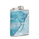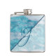 Este elegante matraz geométrico de mármol azul verde azulado se puede personalizar con tu nombre y monograma inicial de tu empleada doméstica, dama de honor, madre de novia o novio, o cualquier otra persona en tu fiesta de bodas. Presenta un guión elegante con letras a mano y una tipografía clásica. Hace un gran regalo o favor para los miembros de tu partido nupcial.