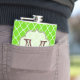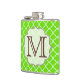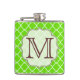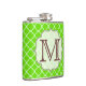 Lime Green Quarterfoil Personalizado Trimestre Relieve metalizado Monograma Patrón inicial de tela personalizado Whiskey Flask