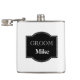 El matraz envuelto en vinílico se muestra en un diseño blanco y negro con un nombre de salón de muestra. Personalizar este matraz y cambia el nombre del ejemplo al suyo.
