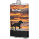 Caballo De Troping Estándar Al Amanecer, Beba Matraz. Arte Digital. Silhouette de caballos y conductores estandarizados al atardecer. Personalizable completo; hazlo tú mismo. Edite el texto a su gusto o quítelo por completo.