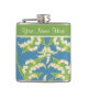 Un matraz de cadera de bonito para personalizar, con un patrón de estilo Art Nouveau de Lilies-of-the-Valley sobre un fondo azul; de la colección Posh & Painterly 'For the Love of Lilies'.