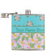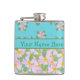 Un matraz de cadera de moda para personalizar, con bonito, mezclar''n'los patrones nostálgicos de Rosas de Perro Rosado en azul turquesa. Parte de la colección Posada Rosy y Pintorly. (Este patrón se ajustará a todos los frascos.)