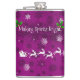 Disfrute de su bebida favorita para adultos con este festejo Magenta Santa's Sleigh and Reindeer Flask. El diseño de la máscara de nieve muestra el trineo de Santa adornado con bayas huecas y tirado por sus renos contra un fondo magenta con copos de nieve cayendo y el dicho "Haciendo brillantes los espíritus" que puedes dejar o personalizar con tu propio dicho. También hay artículos de regalo y de vacaciones disponibles con este diseño.