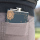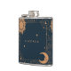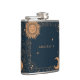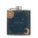 Este matraz de cadera personalizado presenta un diseño celeste retro de sol y luna con su nombre en tipografía sans serif.