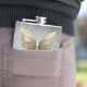 Disfruta de tus bebidas alcohólicas favoritas en cualquier momento con un matraz de Vinyl de mariposa con canto de mariposa. El diseño de la máscara presenta una lujosa mariposa con joyas contra un elegante patrón de damasco gris vintage. También hay artículos de regalo adicionales disponibles con este diseño.