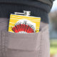 Un diseño caprichoso de estilo retro con un recuerdo de un fanático de las vacaciones españolas con un fondo de rayas amarillas doradas. Un diseño de personalizable en blanco, negro, rojo y amarillo para que puedas personalizar con tu propio texto, imágenes e ideas. Imagen original de arte digital.