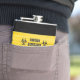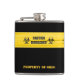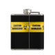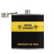 Matraz negro humorístico con gráficos de una cinta amarilla Caution BioHazard, corriendo alrededor del matraz. Personalice el texto amarillo, en la parte inferior para leer lo que desee. Gran idea de regalo para cualquier tipo y especialmente genial como regalo de boda para los padrinos.