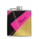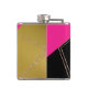 Elegante matraz de bebida hecho en un aspecto moderno de negro, dorado y rosa caliente, con acentos de triángulo purpurinoso dorado. El texto negro está listo para personalizar. Bonita idea de regalo para ella.