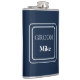 El matraz envuelto en vinílico se muestra en un color sólido de azul marino con un nombre de salón de muestra. Personalizar este matraz y cambia el nombre del ejemplo al suyo.