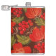 Un cuadro de estilo Petrykivka presenta flores y bayas rojas vibrantes, con motivos complicados y pinceladas delicadas. Las flores son grandes y simétricas, rodeadas de pequeños elementos florales y hojas ornamentales. Las bayas, probablemente racimos de viburno, se realzan con un detalle fino, dándoles un aspecto realista y a la vez decorativo. La composición está arreglada de manera tradicional ucraniana, mostrando contrastes brillantes y un armonioso balance de colores en un fondo blanco o claro.