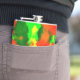 Frasco Envuelto De Vinilo De Camuflaje Colorido. Diseñado con colores vivos como el rojo, el verde y el amarillo.