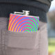 Aquí hay un matraz colorido con un patrón de arco iris espiral abstracto girando alrededor de un objetivo central en colores verdes, azules, amarillos, naranjas y rojos. Podría ser usado en el contexto de LGBT.