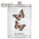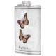 Disfruta de tus bebidas alcohólicas favoritas en cualquier momento con un matraz esmaltado de Vinilo floral de mariposa de cobre. El diseño del matraz presenta un par de mariposas vibrantes que descansan sobre una vina floral blanca sobre un fondo gris claro. También hay artículos de regalo adicionales disponibles con este diseño.