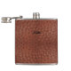 Un bonito matraz con gráficos de un rico estilo de cuero de avestruz marrón. Personalice el monograma negro de tres letras, en el frente para que se adapte a sus necesidades. Gran idea de regalo para cualquier tipo y especialmente genial como regalo de boda para los padrinos.