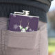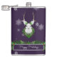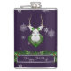 Disfruta de tus bebidas alcohólicas favoritas en esta temporada de vacaciones con un matraz vinilado de reno morado. El diseño del matraz incluye un reno festivo con una corona de Navidades adornada con bayas y copos de nieve que caen y una caja de saludo de vacaciones decorada con guirnaldas de vacaciones. También hay artículos de regalo y de vacaciones disponibles con este diseño.