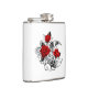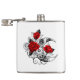 Contorno, luna de media luna mecánica con engranajes, decorada con rosas rojas con tallo negro y hojas sobre fondo blanco. Steampunk